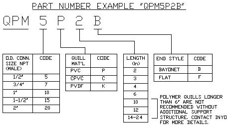 PVC, CPVC & Kynar (PVDF) Injection Quills provide broad chemical compatibility for a variety of water and industrial chemical applications. These quills can be used with most acid & base solutions, and many chemicals including chlorine & ammonia.
