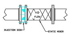 (Shown) Sludge Wafer Disk sandwiched between flanges (injection port not shown)